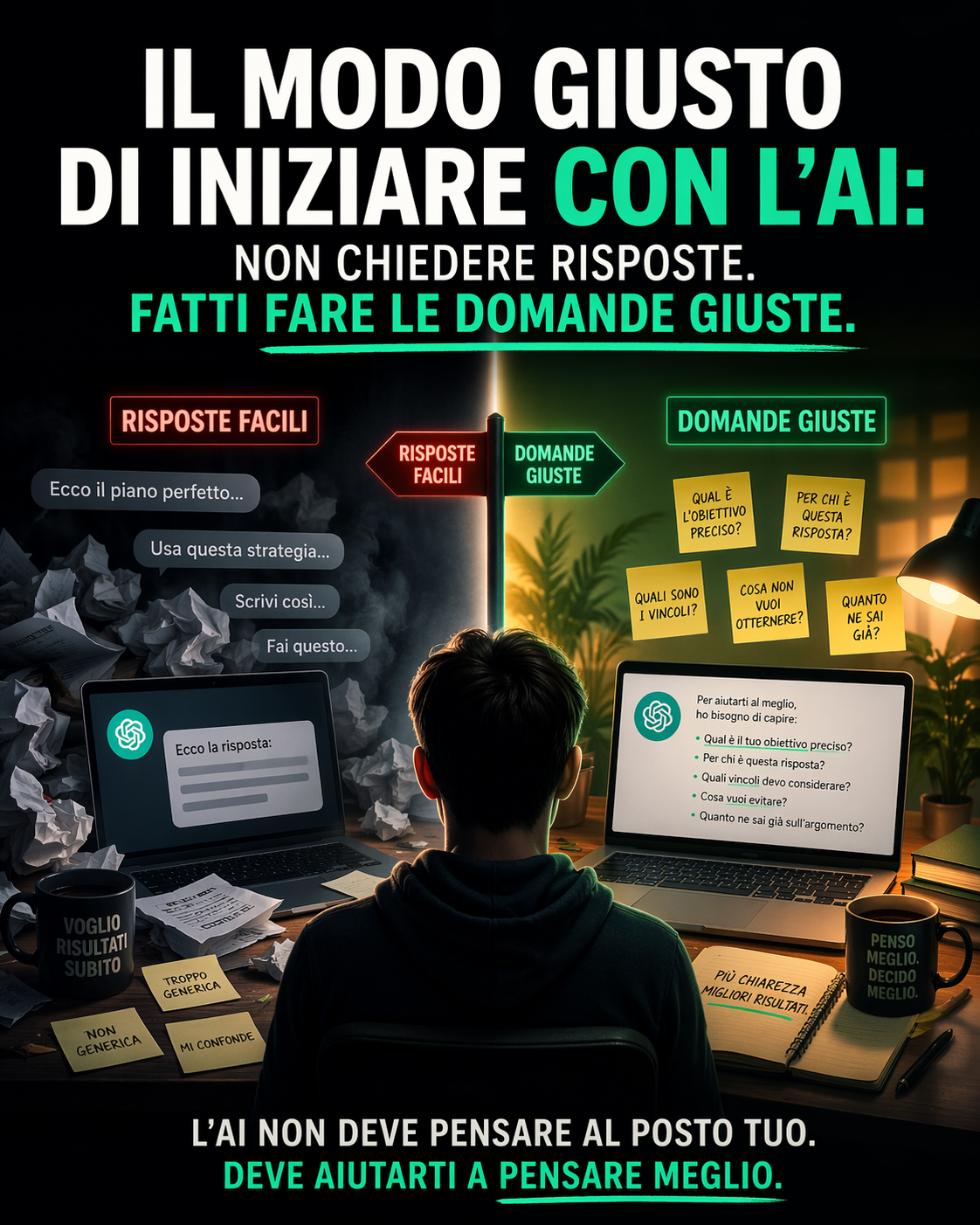 In quel momento smetti di usare l’AI come distributore automatico di testo e inizi a usarla come sistema di chiarimento.